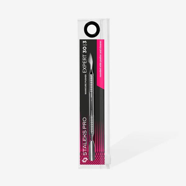 חלק העבודה "דוחף רחב מעוגל" מיועד להרמה ולדחיפת הציפורן לאחור, נוח לעבודה עם לוחית ציפורן רחבה