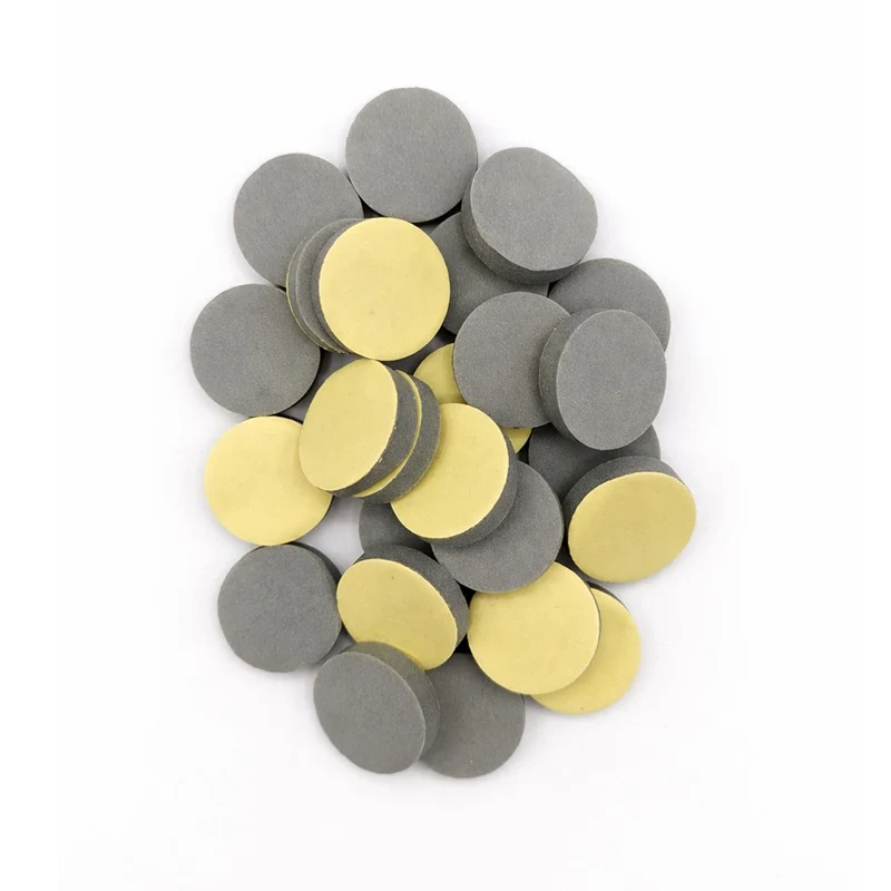 מדבקות־ספוג חד־פעמיות מקצועיות לדיסק פדיקור עם שכבת ספוג עבה, המיועדות לפוליש וגימור בסוף הטיפול. המבנה הייחודי של האברזיב מאפשר ללטש את פני כף הרגל ולשייף בעדינות סדקים קטנים, כך שאפקט החלקות נשמר לאורך זמן.