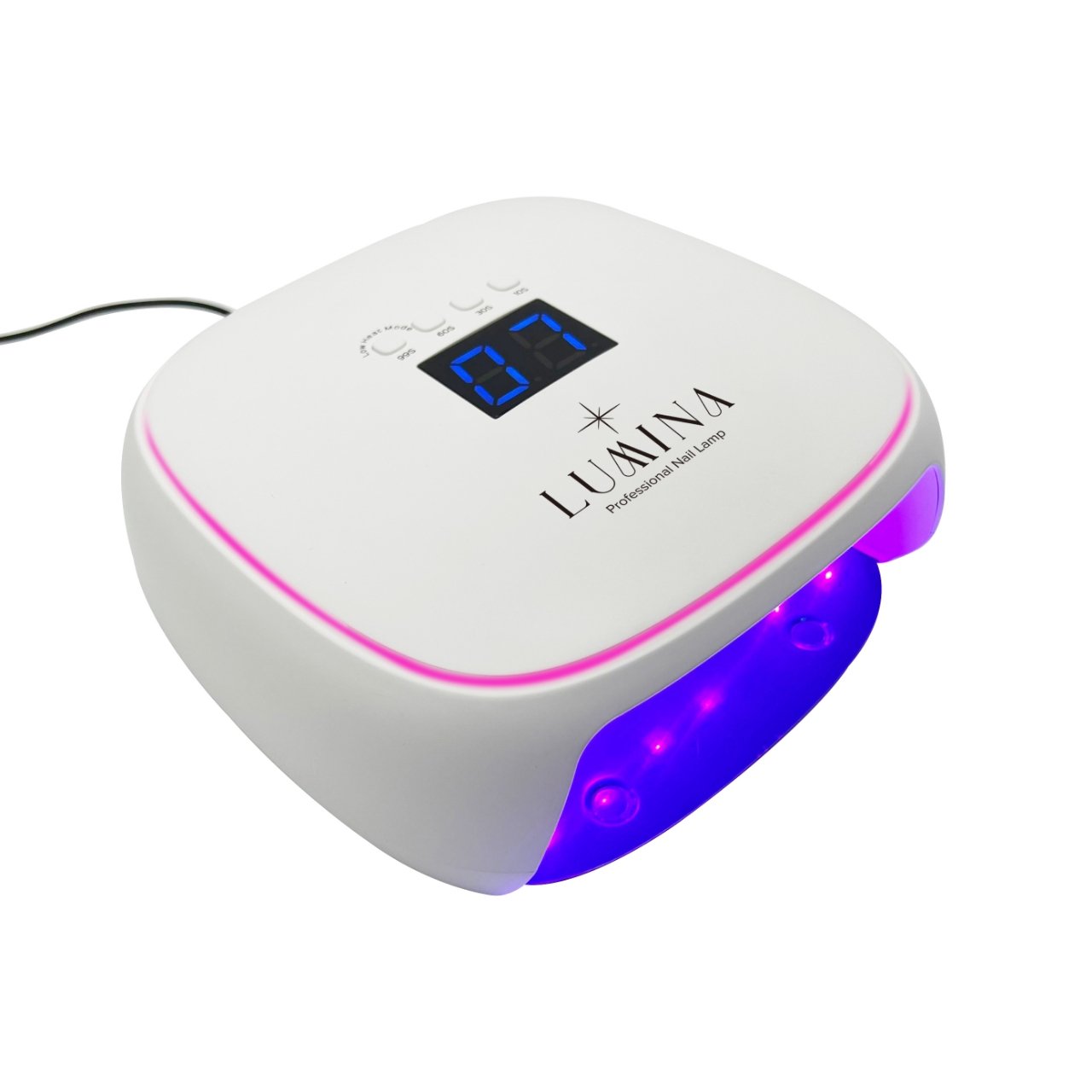 מנורת ייבוש עם 30 נורות LED עוצמתיות, צג דיגיטלי מתקדם, ומערכת חכמה לבחירת זמני ייבוש + מצב חום נמוך למניעת כאבים.