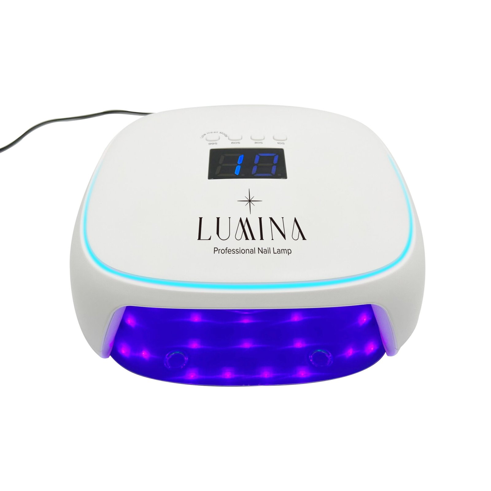 מנורת ייבוש עם 30 נורות LED עוצמתיות, צג דיגיטלי מתקדם, ומערכת חכמה לבחירת זמני ייבוש + מצב חום נמוך למניעת כאבים.