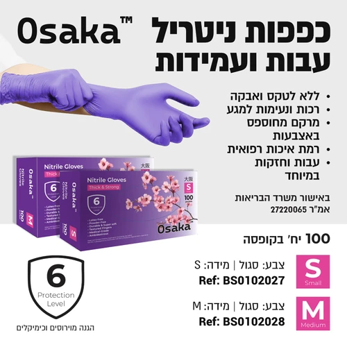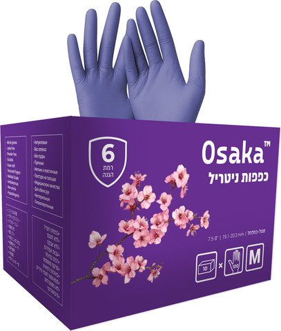 קרטון כפפות צבע סגול 10 חבילות ניטריל ללא אבקה 100 יח׳ Osaka DSI (מידה M)
