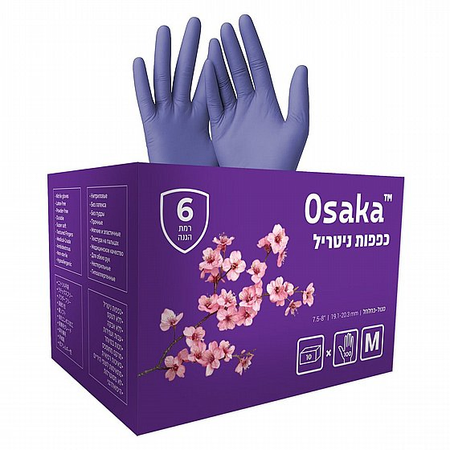 קרטון כפפות צבע סגול 10 חבילות ניטריל ללא אבקה 100 יח׳ Osaka DSI (מידה S)